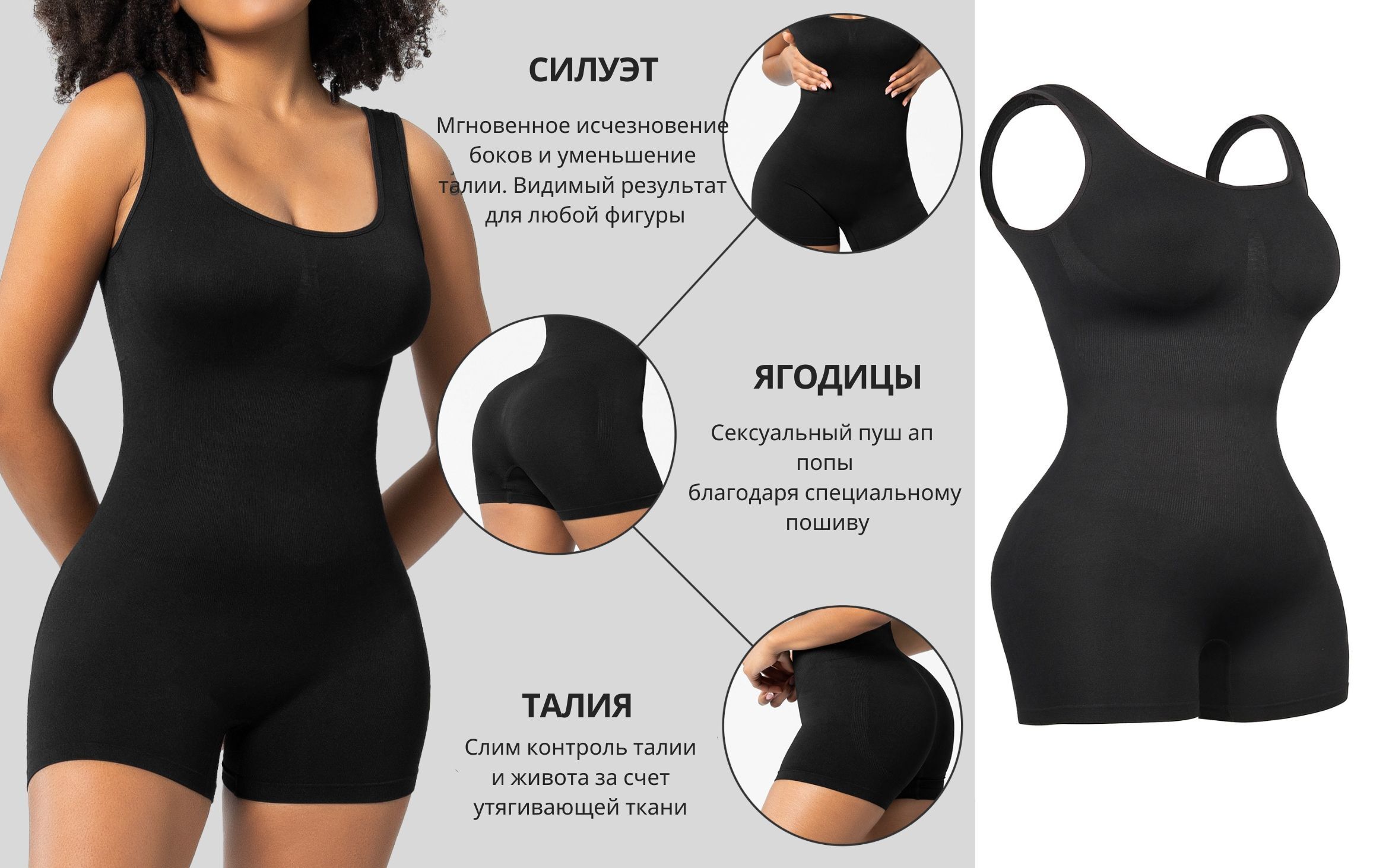 Утягивающий лиф с вшитыми чашками прекрасно поднимает и формирует грудь, в то время как шортики эффективно корректируют область живота и бедер. Это изделие идеально подходит как для осенних образов, так и для летних упражнений: от тренировок в зале до танцевальных вечеринок. С таким боди вы легко создадите стильный аутфит под пиджак для офисной встречи или вечернего выхода.