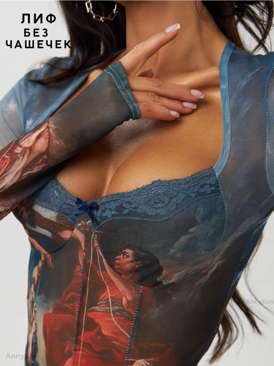 Приятное к телу, легкое и подходит как вечернее и на мероприятие. Оригинальный и невероятно стильный рисунок - и вы будто сошли с картины античных художников. Боди сетка застегивается внизу на кнопочки. Обеспечивает женственность и изысканность в каждом движении. Выглядит как праздничное боди и имеет высокую посадку, выгодно подчеркивает талию и бёдра. Боди для подростка нарядное на новый год. Материал хорошо тянется, не давит на тело и не впивается в кожу. Это боди женское с длинным рукавом идеально подходит для создания эффектного и запоминающегося наряда на любое мероприятие, в том числе и вечернее. В нем вы будете выглядеть утонченно и стильно. Боди с вырезом на груди выглядит элегантно и изящно. Боди для девочки подростка с закрытой попой имеет яркий рисунок на полупрозрачной сетке. Одежда у2к подходит и для тех, кто любит аниме. Боди серое и синим оттенком от AnnyKun станет вашим самым любимым.