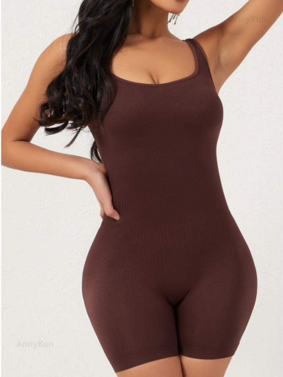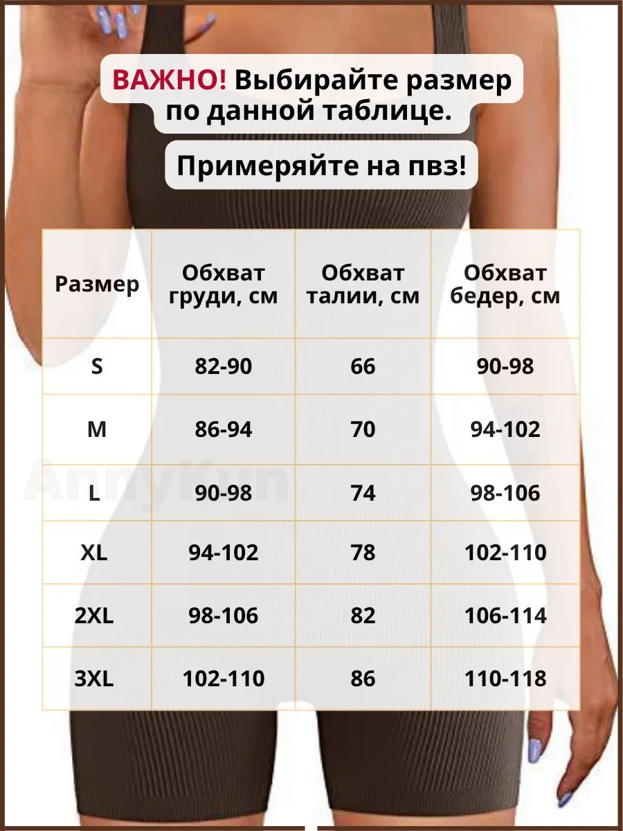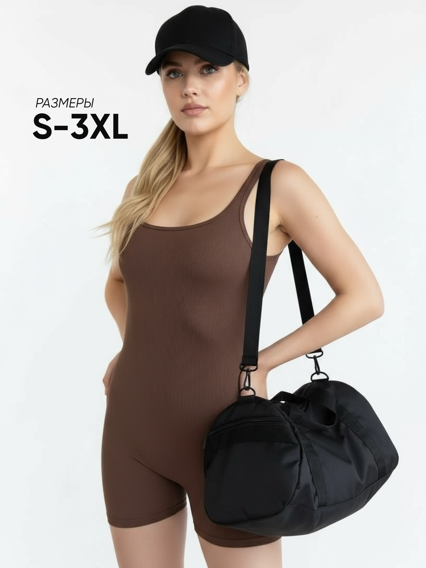 Материал плотный, дышащий и быстро сохнущий — он сохраняет форму даже после интенсивных занятий в зале. Обтягивающий крой с продуманной утяжкой визуально корректирует силуэт, подчеркивая спину, плечи и талию. Комбинезон утягивающий для спорта работает как полноценный спортивный костюм и как удобное боди с шортами, давая баланс между свободой движения и надежной посадкой.