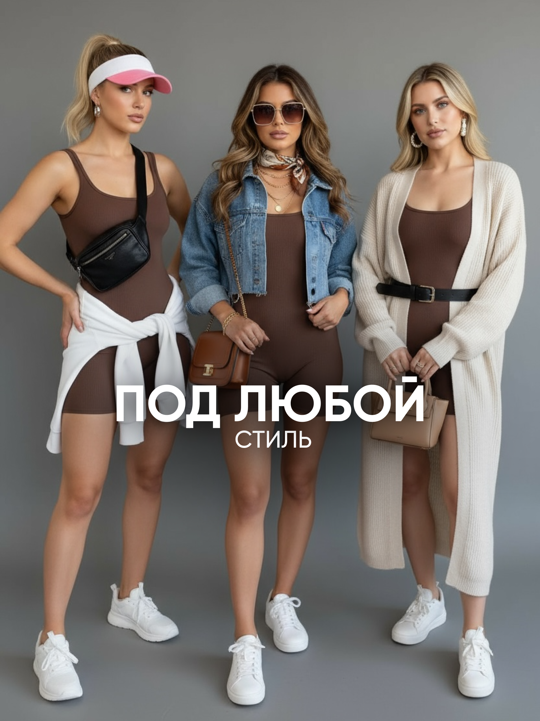 Эстетика вдохновлена брендом Skims (скимс) — минимум деталей, чистые линии и выразительный, собранный силуэт. Слитная форма создает цельный образ, а ткань в рубчик добавляет стильный акцент. После тренировки можно накинуть рубашку или худи — и спортивный яркий комбинезон легко впишется в повседневный гардероб.