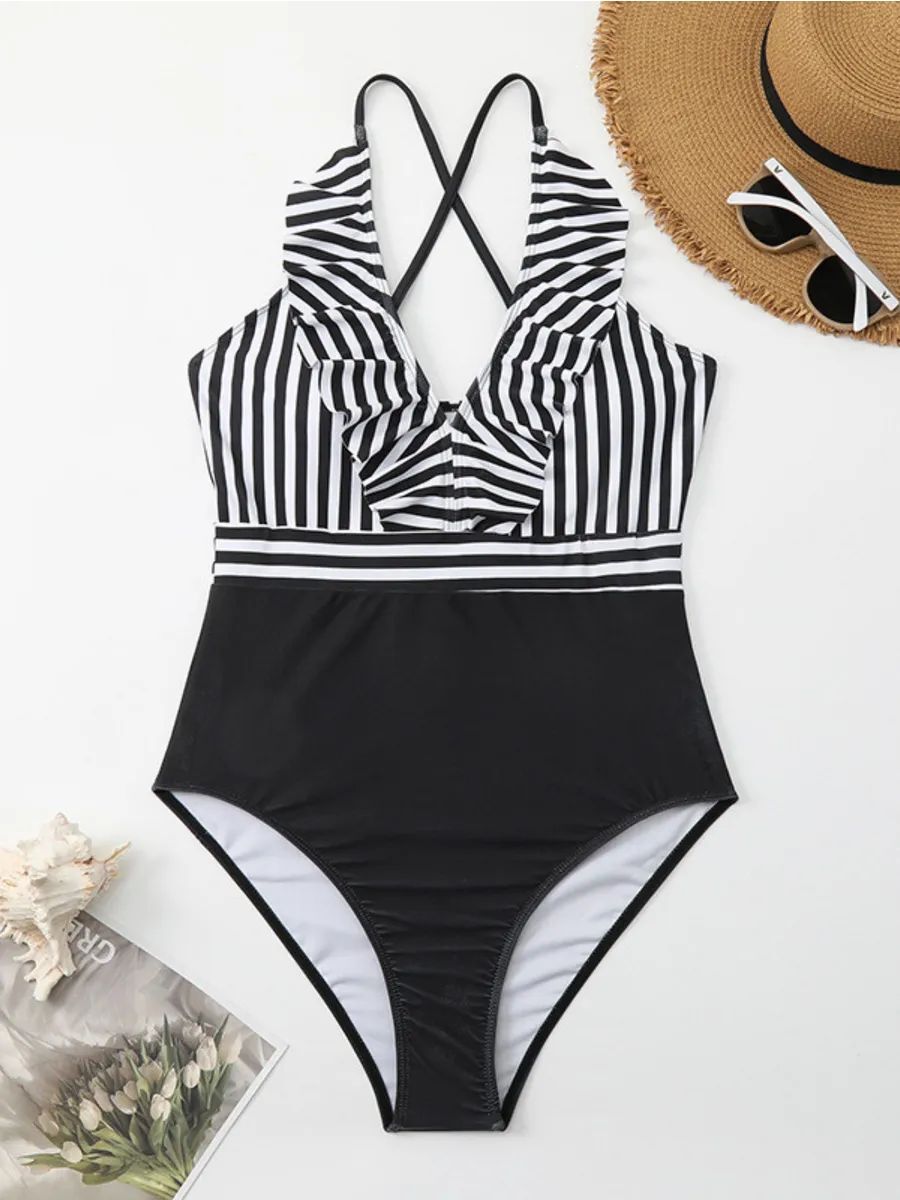 Купальник слитный женский с рюшами — отличный выбор, сочетающий в себе элегантность, женственность и комфорт. Рюши придают образу романтичность, нежность и игривость. Правильно расположенные рюши могут визуально скорректировать фигуру, добавив объем там, где это необходимо, или отвлекая внимание от проблемных зон.