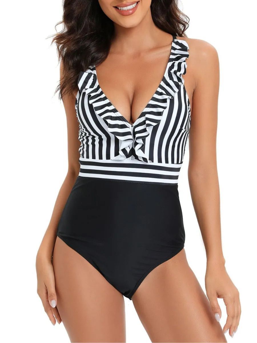 Купальник женский слитный подходит для разных типов фигур, в зависимости от фасона и расположения рюшей. Существует огромное количество моделей с разным количеством, размером и расположением рюшей, что позволяет подобрать вариант на любой вкус.