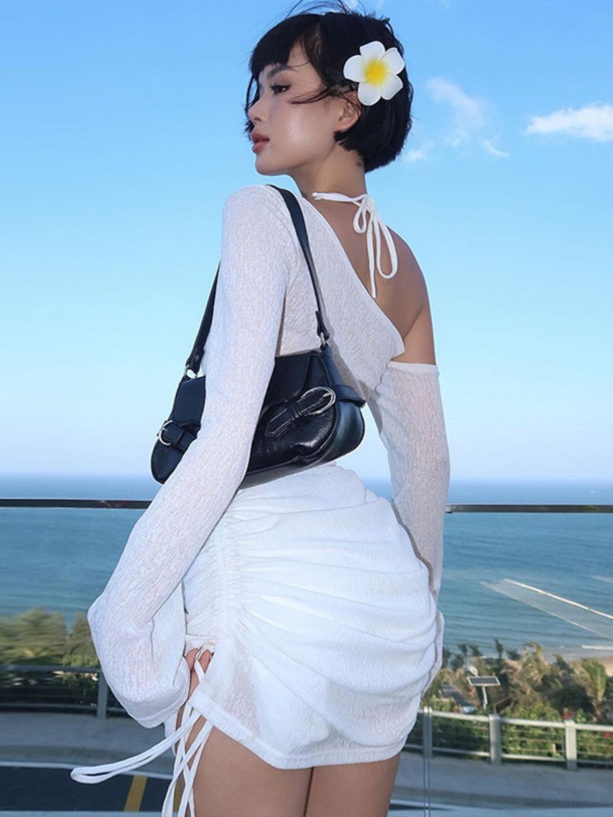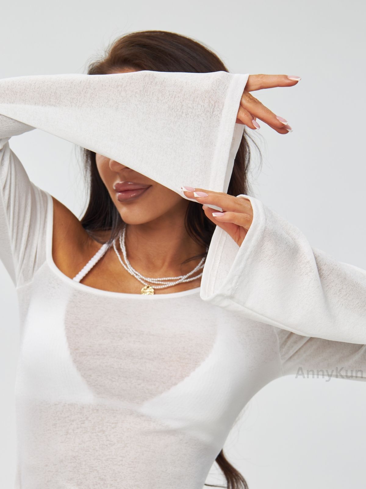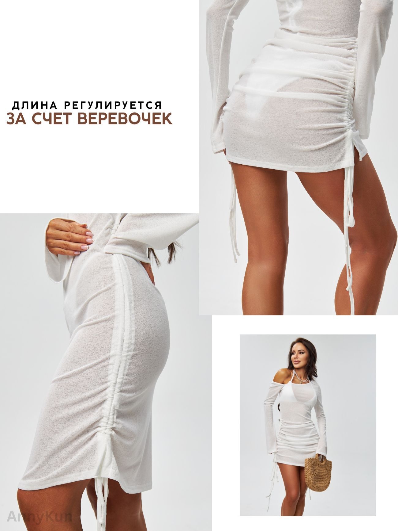 Летнее пляжное платье на купальник - новинка бренда No Frame. Туника подходит для поездок на море, прогулок по набережной, в отпуск или просто как накидка на купальник. Длина платья мини регулируется. Платье сшито на одно плечо - то есть один рукав просто пришит, это такой необычный крой летнего аутфита. Прозрачное платье в сетку добавит женственности в ваш образ.