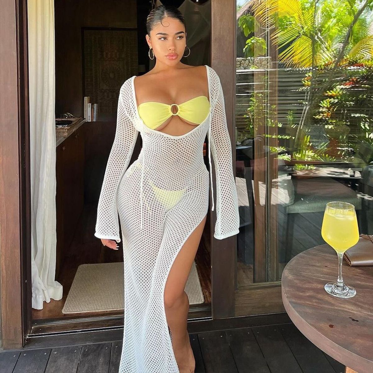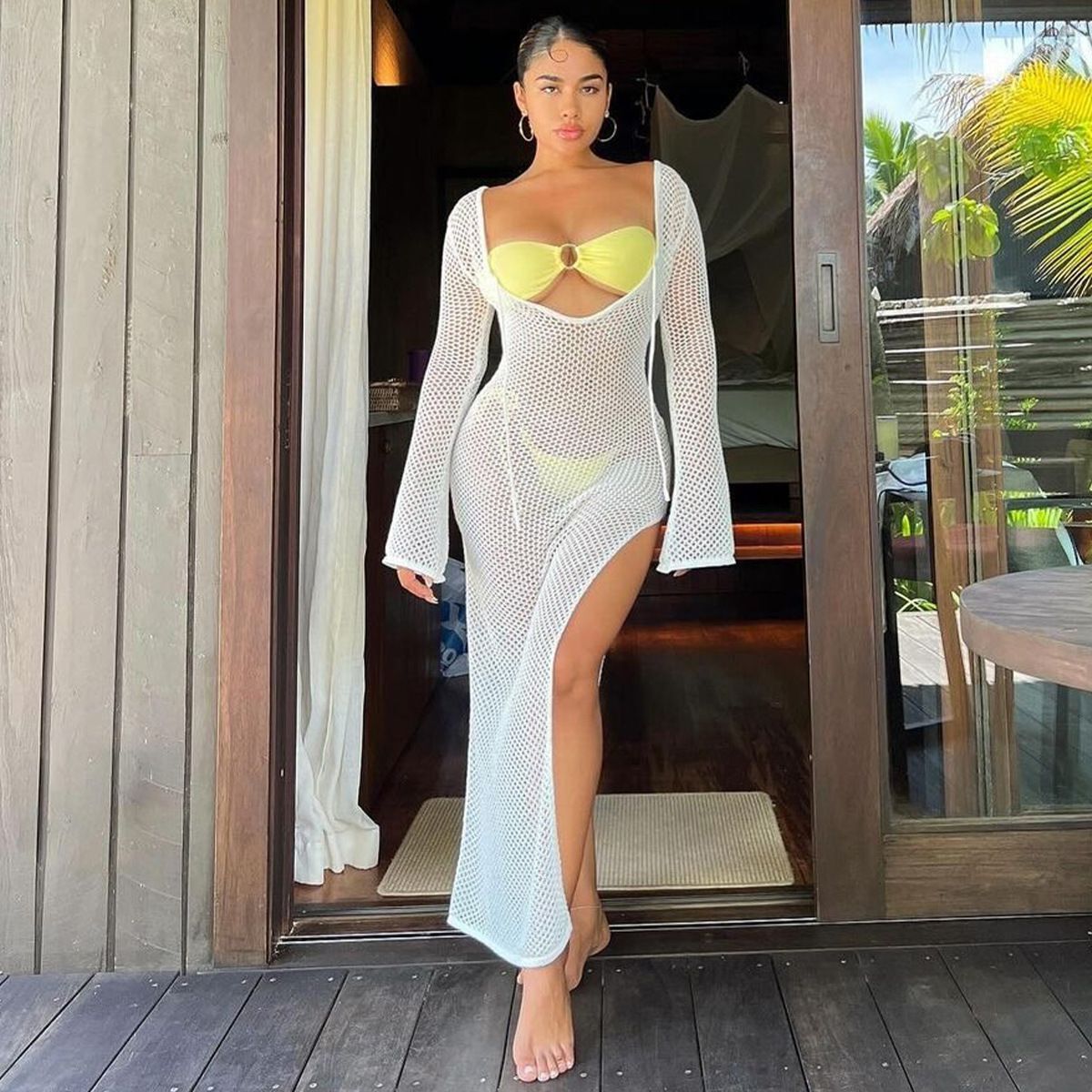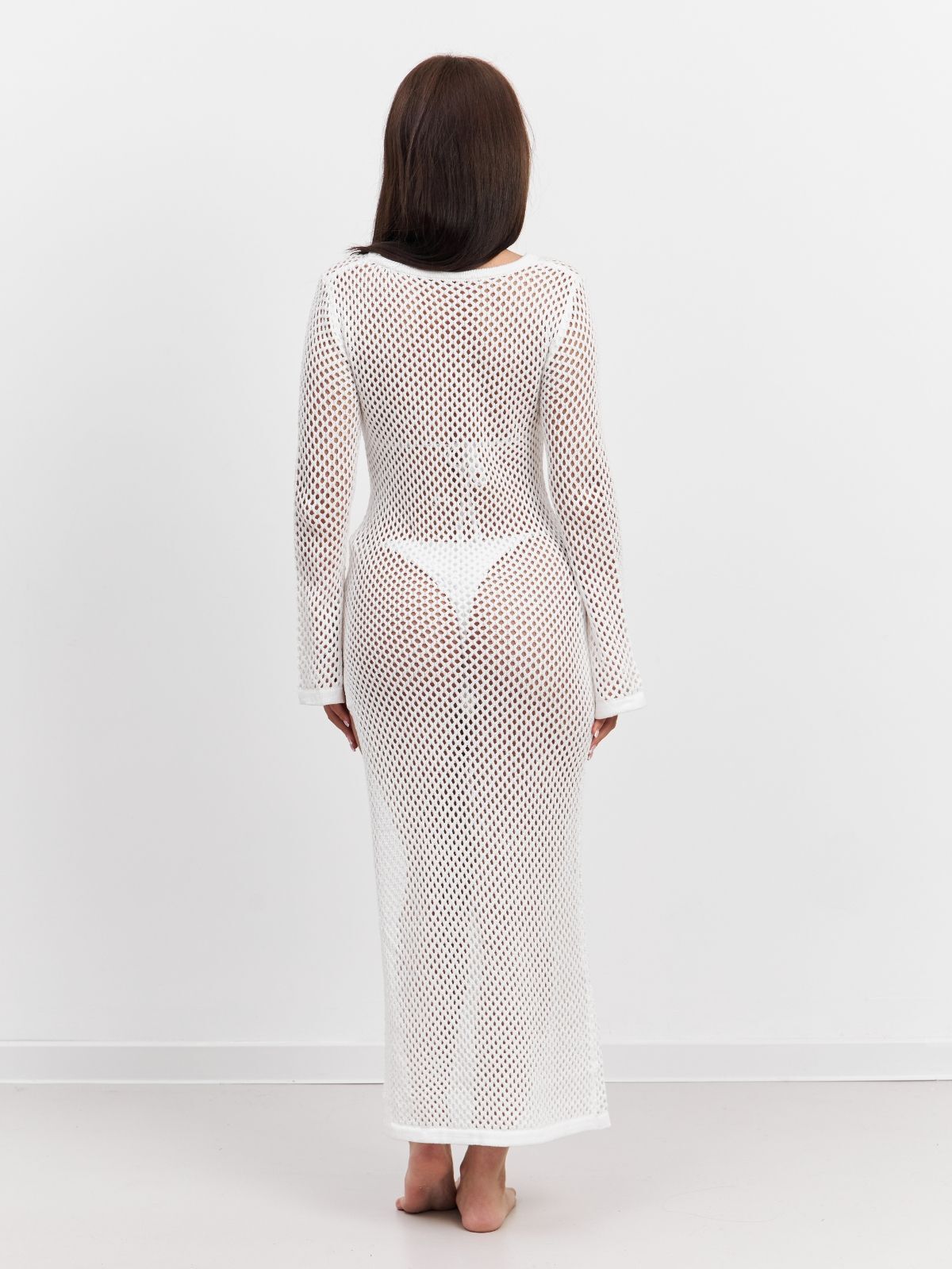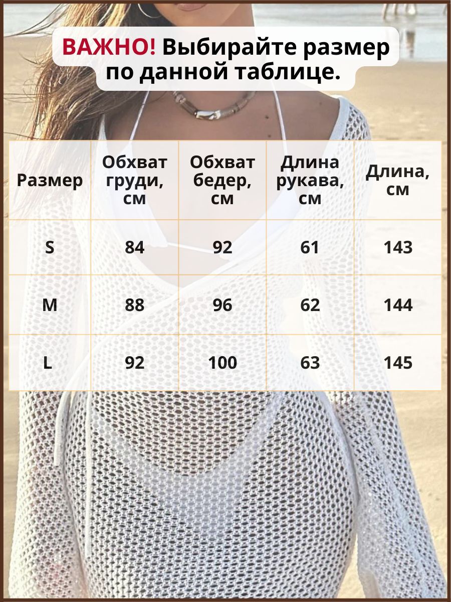 Платье пляжное вязаное от бренда No Frame – это идеальный выбор для теплых летних дней. Это макси платье с длинными рукавами, созданно в сетку, что обеспечивает его долговечность и удобство носки. Особенностью данной модели является крупная вязка и прозрачная фактура материала, придающая ей легкость и воздушность. Платье предназначено для высоких и невысоких женщин и идеально подходит для пляжного отдыха. Стильное и практичное, это платье станет вашим любимым аксессуаром для летних прогулок и отдыха на природе.