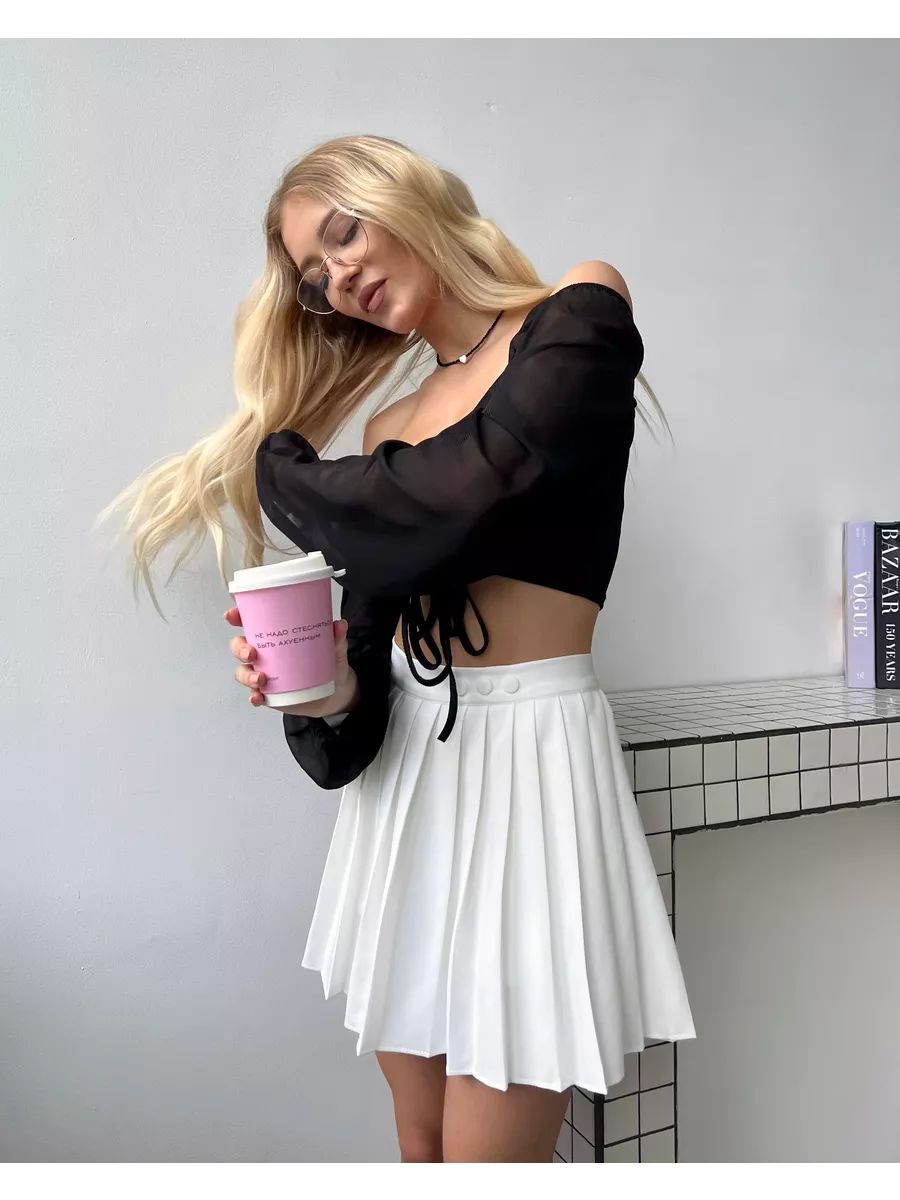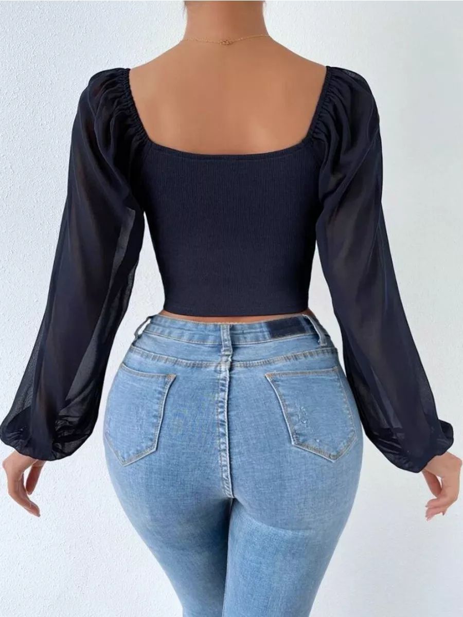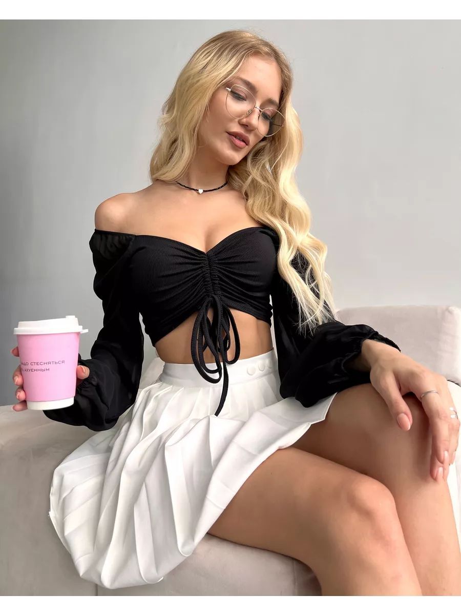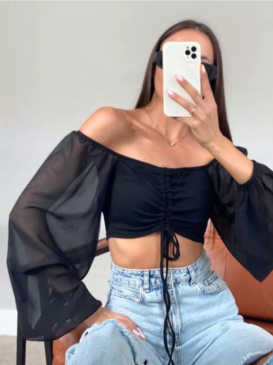 Этот кроп топ женский с рукавами фонариками идеально подходит для лета – ультра-легкий, он обеспечит вам ощущение свежести и комфорта. Черный топ со сборками будет сочетаться со всеми другими элементами вашего образа. Прекрасный выбор для любого случая - от классического офисного стиля до расслабленных летних образов.