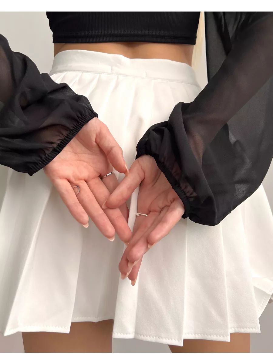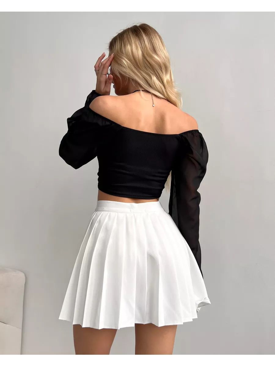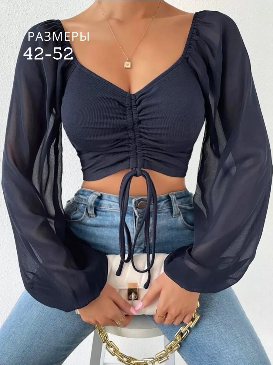 Кроп топ женский станет незаменимым как для базового, так и для вечернего гардероба. топ с объемными рукавами обладает особым очарованием и придаст вашему образу воздушность и шик. Материал в рубчик, хорошо тянется, рукава полу прозрачные.